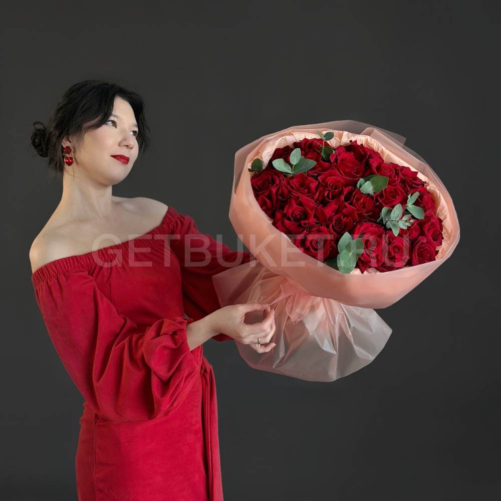 Букет из 19 красных роз с эвкалиптом Роза - 19 шт.