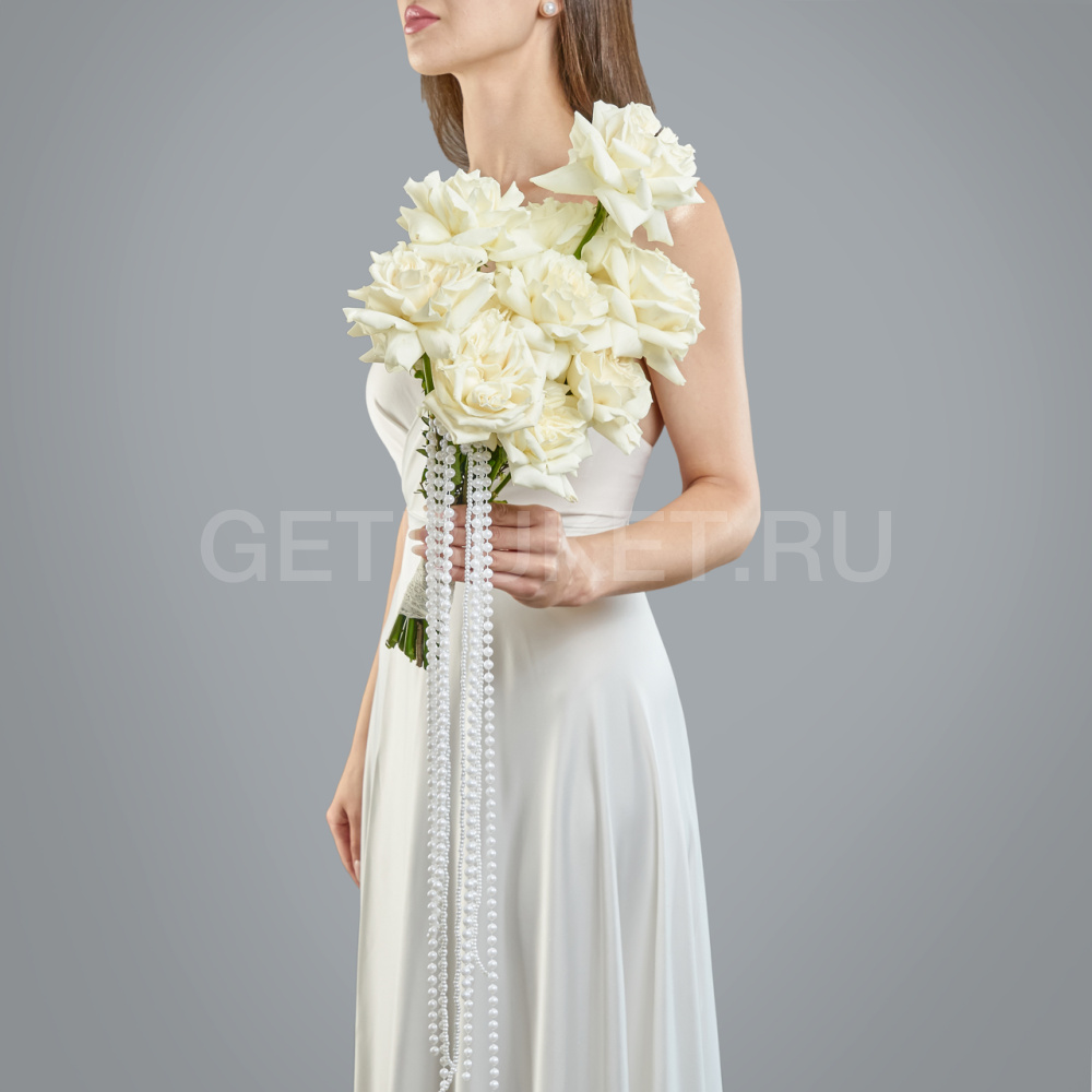 Белый букет невесты с бусами