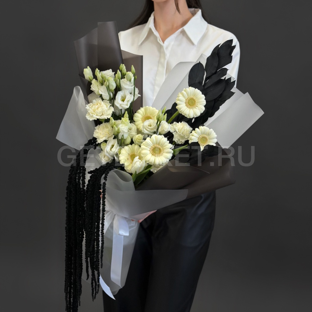 Букет из белых эустом, гербер и гвоздик с розами9 990 ₽Букет из белых эустом, гербер и гвоздик с розами 9 990 ₽ -