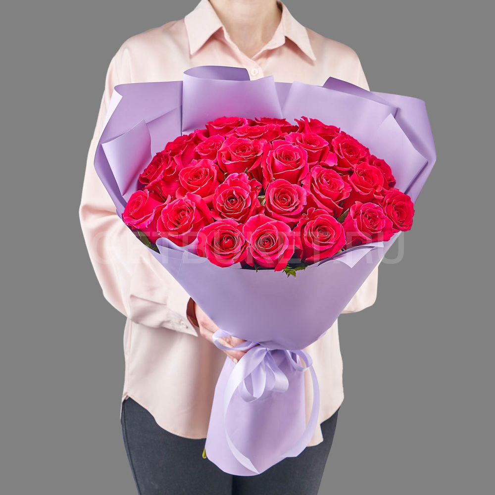 Букет из 25 розовых роз в упаковке