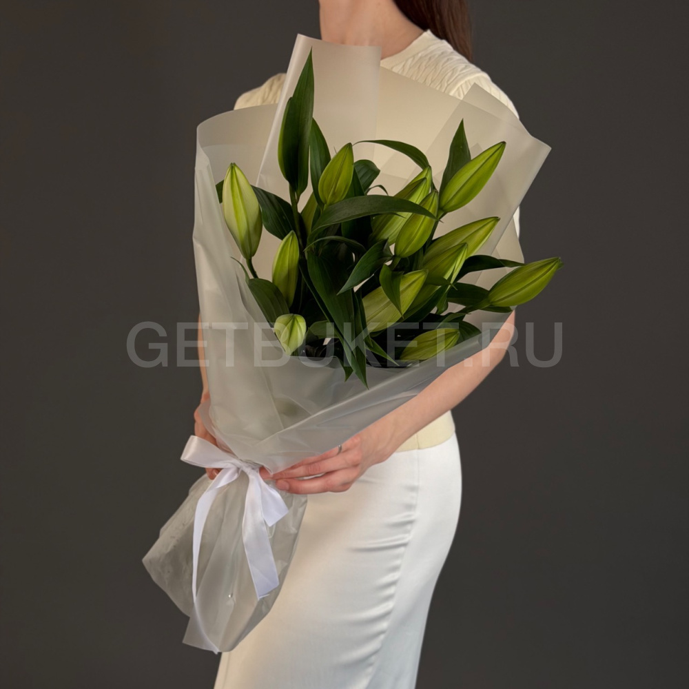 Букет из 5 лилий в упаковке