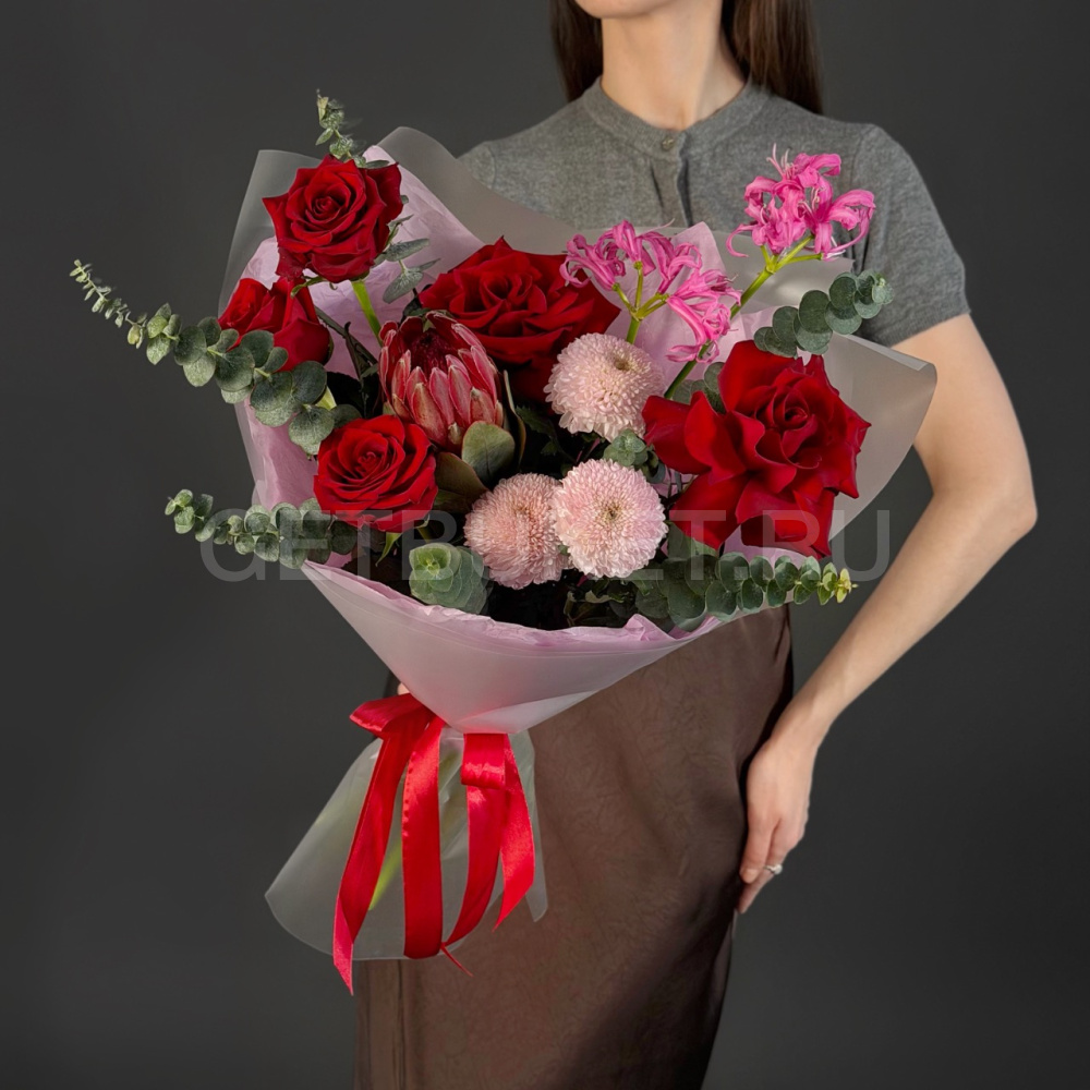 Возможны минимальные отличия букета от фотографии и допустимы отличия по цветовой гамме, так как цветы являются природным материалом и собираются вручную