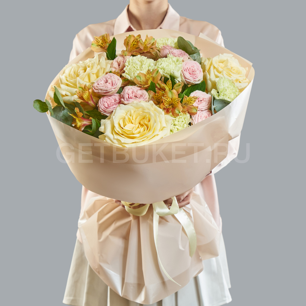 Возможны минимальные отличия букета от фотографии и допустимы отличия по цветовой гамме, так как цветы являются природным материалом и собираются вручную