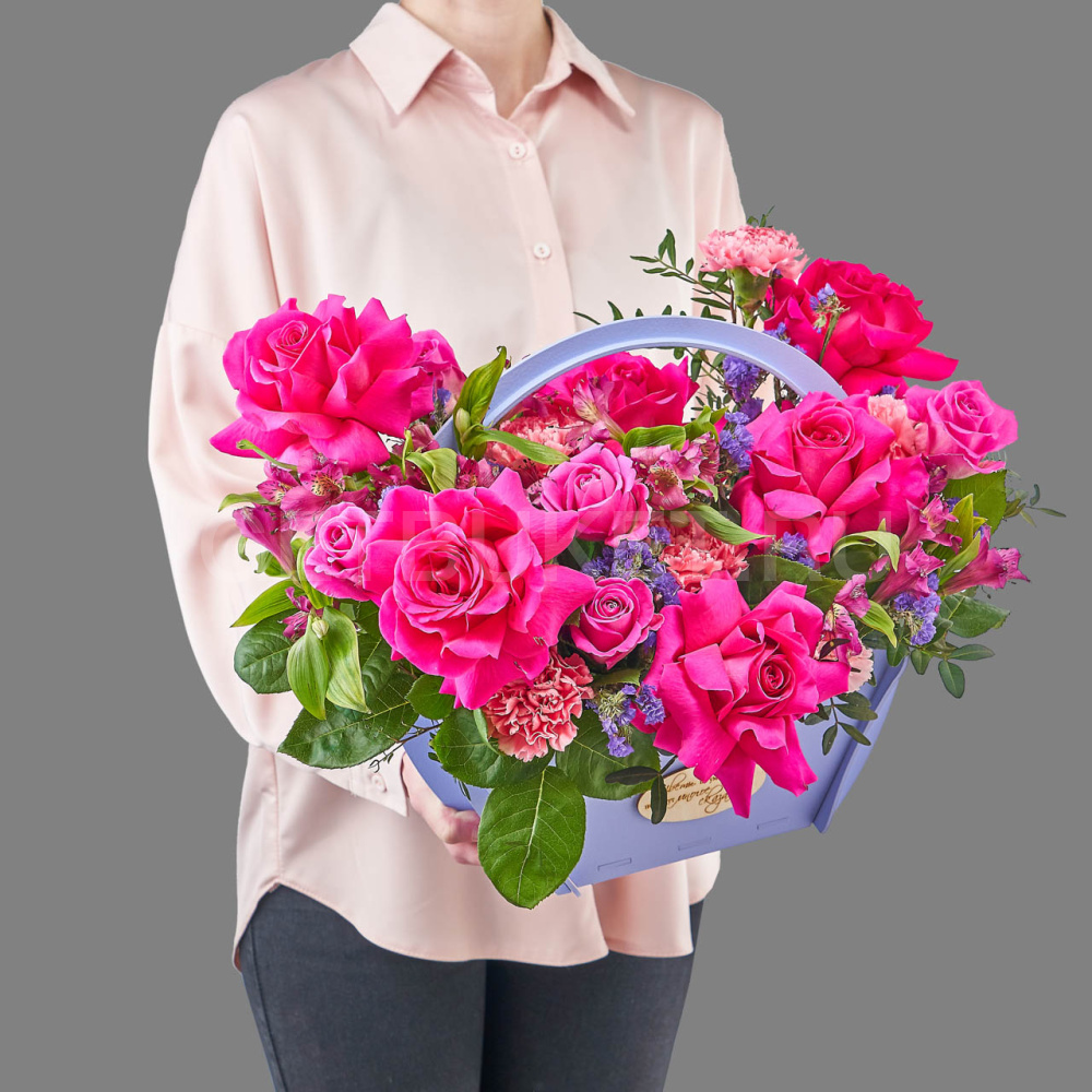 Цветочная композиция с розами, хризантемой и танацетумом в сумочке4 470 ₽Цветочная композиция с розами, хризантемой и танацетумом в сумочке 4 470 ₽ -