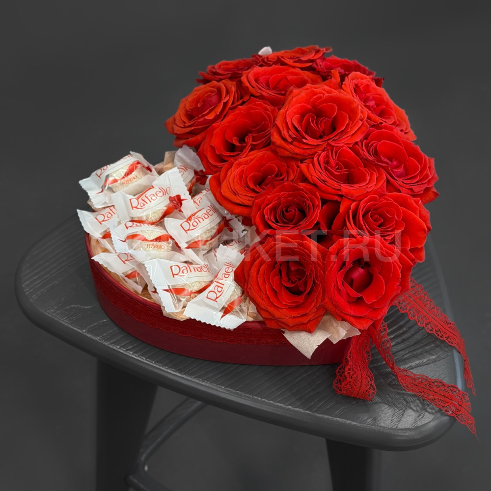 Цветочная композиция из роз с конфетами в виде сердца8 300 ₽Цветочная композиция из роз с конфетами в виде сердца 8 300 ₽