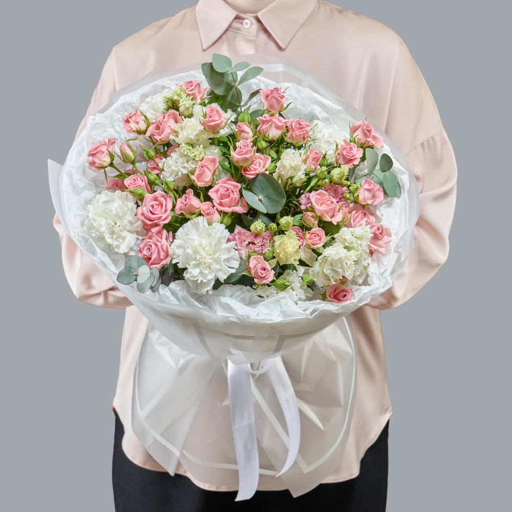 Букет с гвоздиками, розами и альстромерией9 320 ₽Букет с гвоздиками, розами и альстромерией 9 320 ₽ -