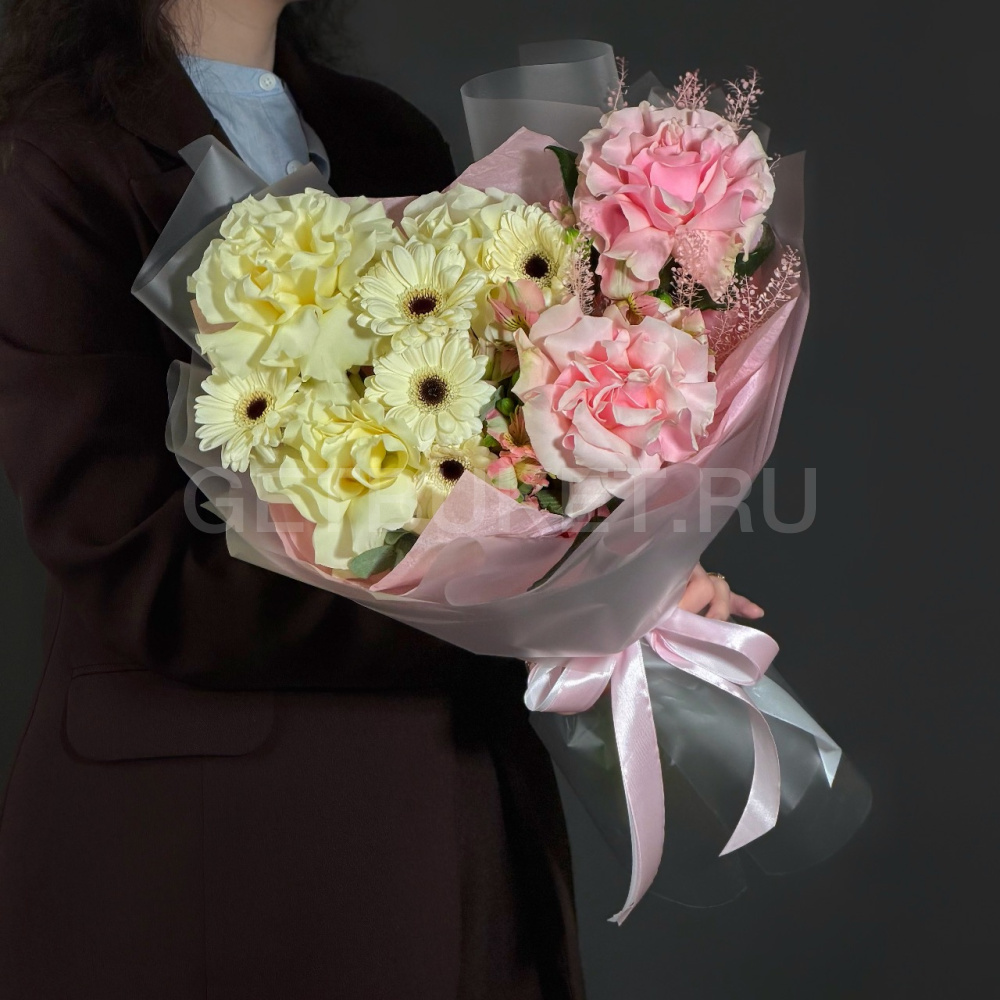 Букет с гвоздиками, розами и альстромерией9 320 ₽Букет с гвоздиками, розами и альстромерией 9 320 ₽