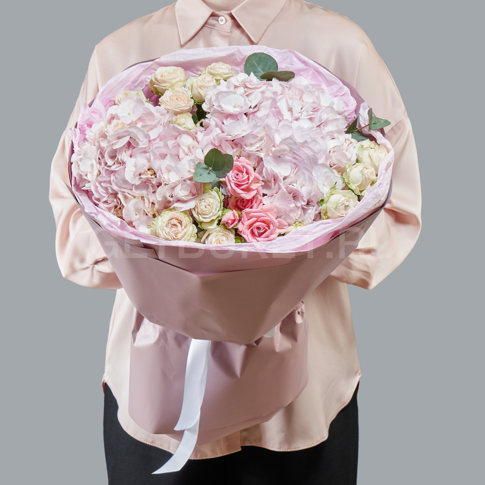 Букет из роз, гвоздик и розовой гортензии с эустомой20 850 ₽Букет из роз, гвоздик и розовой гортензии с эустомой 20 850 ₽ -