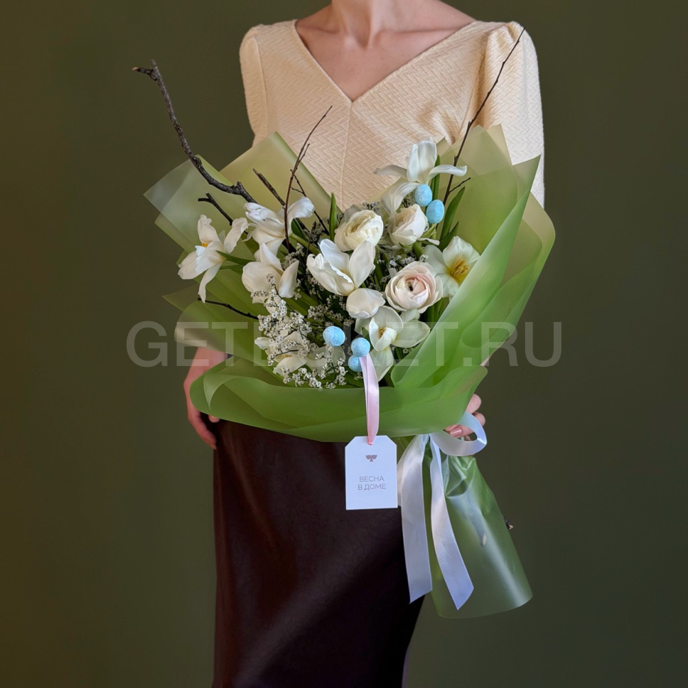 Пасхальный букет из орхидеи, вербы, генисты и лимониума с эустомой9 320 ₽Пасхальный букет из орхидеи, вербы, генисты и лимониума с эустомой 9 320 ₽ -