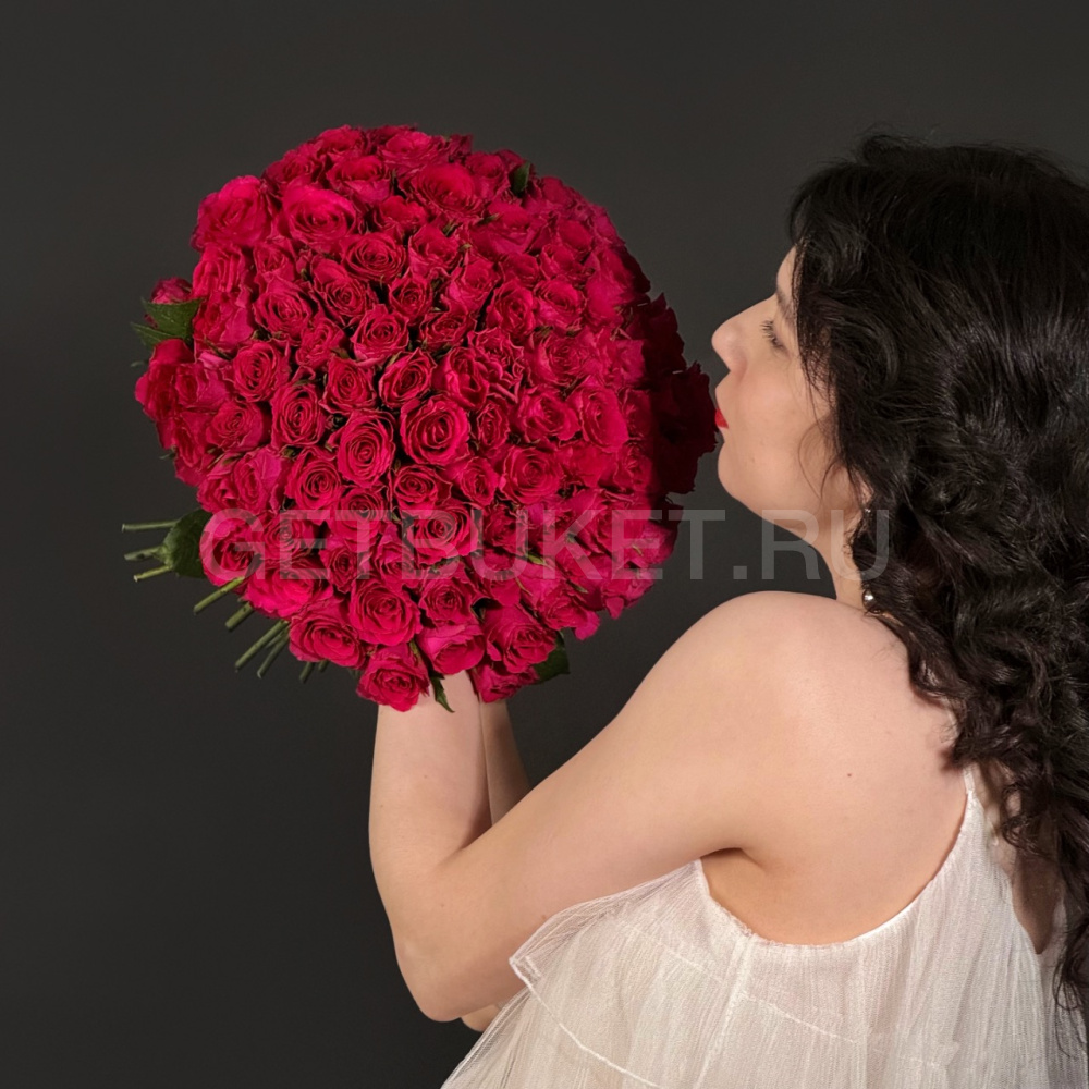 Букет из 101 малиновой кенийской розы
