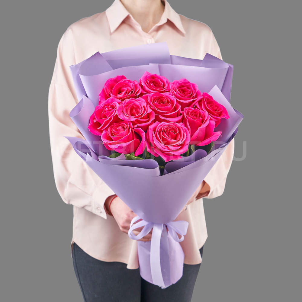 Букет из 11 розовых роз в упаковке